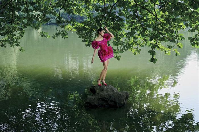 Những hình ảnh thân thuộc như cây lúa, bông sen, núi non trùng điệp và cảnh sắc thiên nhiên muôn màu muôn vẻ tại mảnh đất Ninh Bình được tái hiện đầy thi vị qua ngôn ngữ thời trang của Lê Thanh Hòa. Với thế mạnh trong việc xử lý chất liệu đã làm nên tên tuổi của mình, nhà thiết kế tiếp tục thể hiện sự chỉn chu trong từng chi tiết đính kết, thêu tay, sự mới lạ trong hoạ tiết hay phom dáng. Mỗi thiết kế trong bộ sưu tập không chỉ đẹp mà còn chứa đựng câu chuyện về sự kết hợp giữa quá khứ và tương lai, trở thành chiếc cầu nối lưu giữ và đưa các giá trị truyền thống trong một bối cảnh mới, hiện đại và thời thượng. Đây cũng là thông điệp anh muốn gửi gắm đến bạn bè quốc tế, bởi lẽ bộ sưu tập sẽ được thể hiện bởi những cô gái đại diện cho hơn 70 quốc gia trên thế giới trong khuôn khổ cuộc thi Miss Cosmo.