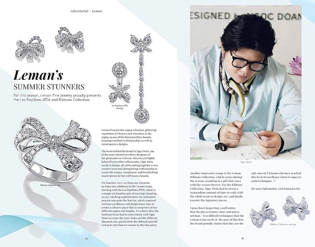 Leman Jewelry của NTK Ngọc Đoàn được yêu mến vì là một thương hiệu trang sức Việt, với toàn bộ sản phẩm từ thiết kế đến chế tác, được làm hoàn toàn trong nước. Vì thế mà ở Leman Jewelry luôn có những tác phẩm khác biệt của riêng mình, không bị lẫn vào đám đông.