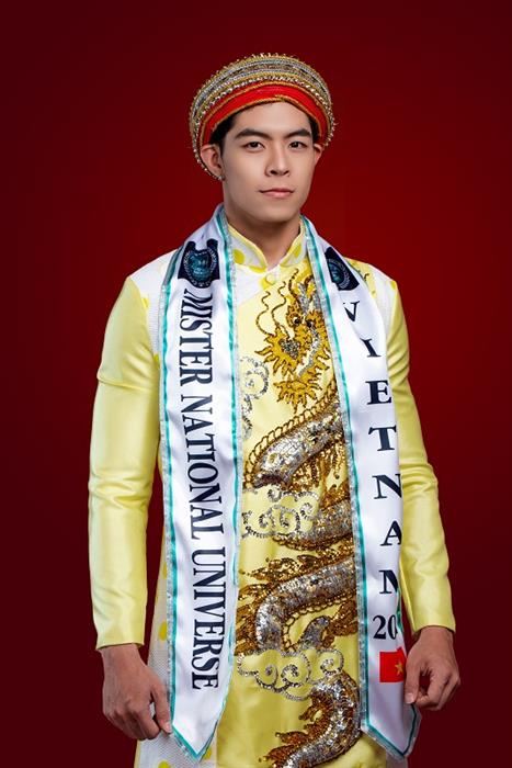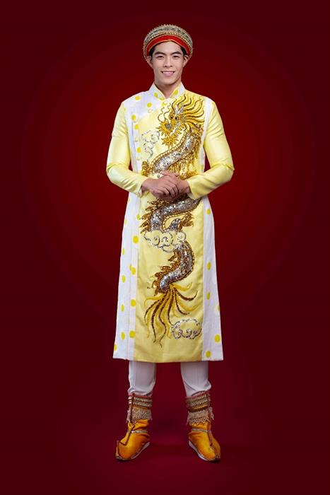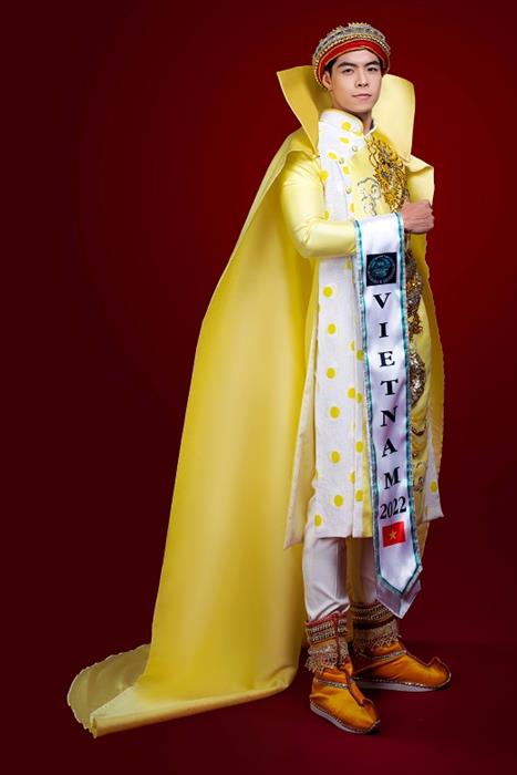 Hàng trăm năm trước trong các triều đại phong kiến tại Việt Nam, trang phục màu vàng và biểu tượng con rồng là những hình ảnh tôn quý nhất tượng trưng cho các vị vua. Đến với Mister National Universe 2022, Phi Việt chọn bộ trang phục này như một niềm tự hào dân tộc.