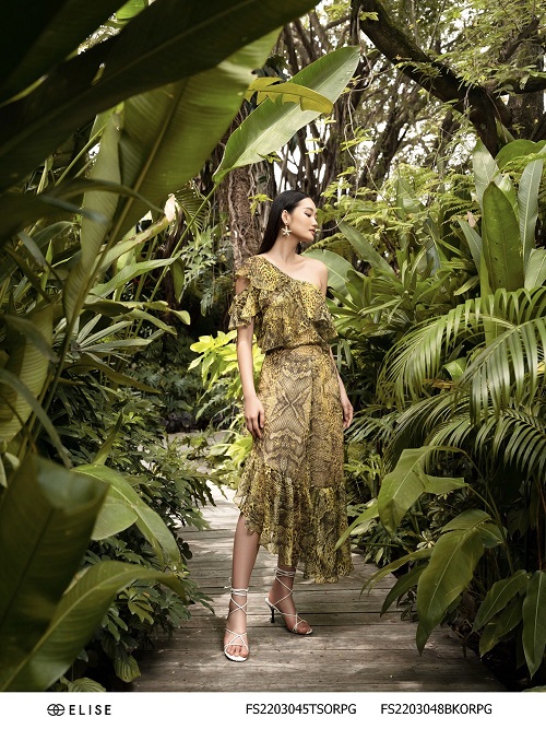 Thương hiệu Elise cũng chú ý đến chất liệu chiffon, tơ nhẹ nhàng, mát mẻ phù hợp với không khí của những bãi biển nhiệt đới cùng rặng cây xanh mướt sẽ đem tới trải nghiệm có “1 – 0 – 2” cho người mặc. Thương hiệu mong muốn mang đến thông điệp ý nghĩa, vẻ quyến rũ và quyền lực cho phái đẹp.