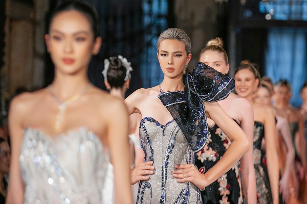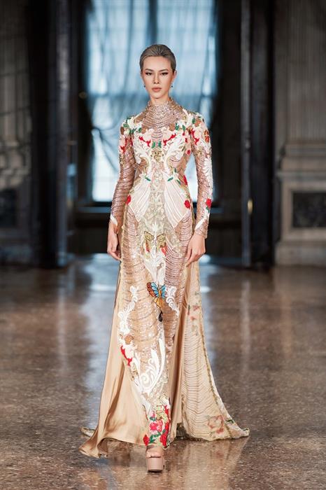 Trình diễn cùng Hoa hậu Hoàn vũ Italy 2021 Caterina Di Fuccia và dàn mẫu quốc tế, các người đẹp Việt gây ấn tượng bởi nhan sắc thanh tú đậm chất Á Đông cùng kỹ thuật catwalk điêu luyện. Qua từng sải bước uyển chuyển nhưng không kém phần dứt khoát, những gương mặt sáng giá của làng mẫu Việt đã làm nổi bật bản sắc văn hóa quê hương trên các trang phục được trình diễn.