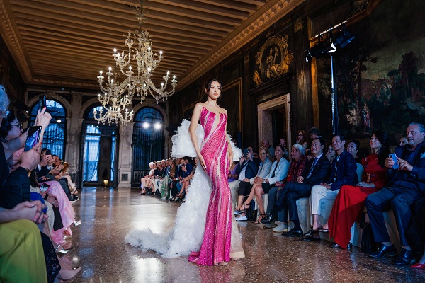 Khi giai điệu từ những nhạc cụ dân tộc Việt Nam vang lên giữa không gian khách sạn Ca’Sagredo, phần trình diễn áo dài đã khơi dậy những cảm xúc lắng đọng trong lòng mỗi người tham dự. Tại khoảnh khắc đó, những sáng tạo của NTK Hoàng Hải không dừng lại ở việc truyền đạt “ngôn ngữ” của thời trang, đó chính là tình yêu, lòng tự hào đối với những di sản văn hoá quê hương mà mỗi người Việt khao khát lan tỏa đến bạn bè quốc tế.