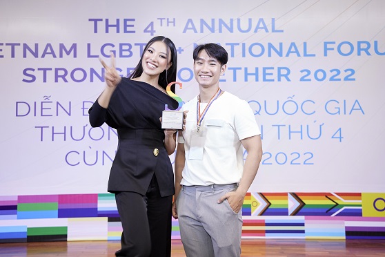 Tintuc - Á hậu Kim Duyên vinh dự nhận 2 giải thưởng lớn tại Diễn đàn LGBTIQ+ Quốc gia thường niên lần thứ 4: “Người truyền cảm hứng của năm” và “Đồng minh cộng đồng LGBTIQ”. Cô hy vọng cộng đồng LGBTIQ sẽ ngày càng lớn mạnh, phát triển và văn minh.