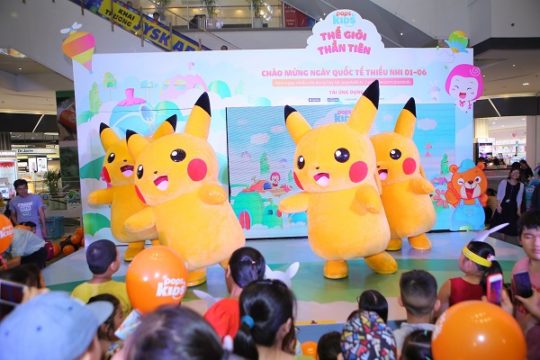 Song song đó, chương trình còn có nhiều hoạt động vui chơi dành riêng cho trẻ em như trò chơi tập thể, trò chơi cá nhân, ca hát, nhảy múa, chụp ảnh…Với từng trò chơi, bé sẽ có cơ hội nhận rất nhiều quà tặng hấp dẫn như thú bông Pikachu, kẹo trứng, nón Pikachu, sticker…