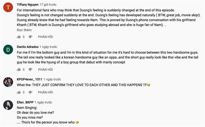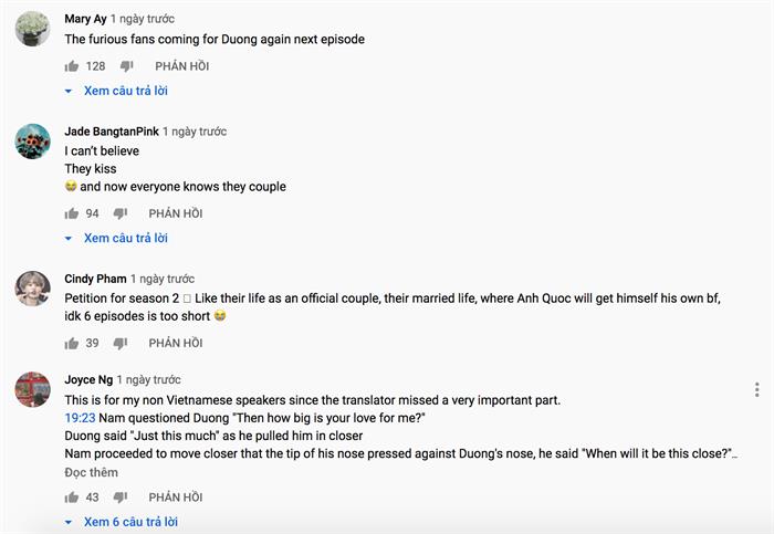 Trên kênh phát hành web drama “Em là chàng trai của anh” cũng liên tục nhận những bình luận khen ngợi phim từ cộng đồng fan boylove quốc tế. Lướt comment ở mỗi tập phim nhiều khán giả Việt còn thể hiện bất ngờ, lầm tưởng như lạc vào link một bộ phim nước ngoài nào đó bởi số lượng comment từ khán giả các nước khác quá nhiều.