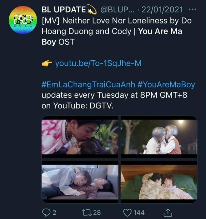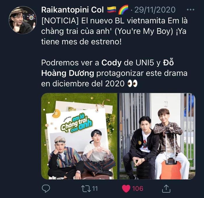Tintuc - Sau 5 tập phát sóng, web drama “Em là chàng trai của anh” và cặp đôi Cody - Đỗ Hoàng Dương đã chinh phục được đông đảo fan boylove quốc tế.