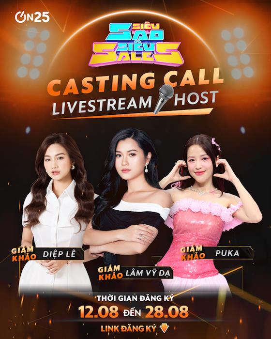 Với tài năng, bề dày kinh nghiệm của mình, Lâm Vỹ Dạ và Puka và Diệp Lê hứa hẹn sẽ là những giám khảo rất đáng mong đợi, mang đến những chia sẻ quý báu về kiến thức giúp các bạn trẻ có thêm động lực và định hướng tiến đến thành công trong lĩnh vực livestream bán hàng tại buổi Casting Call Livestream Host sắp tới của Siêu Sao Siêu Sales.