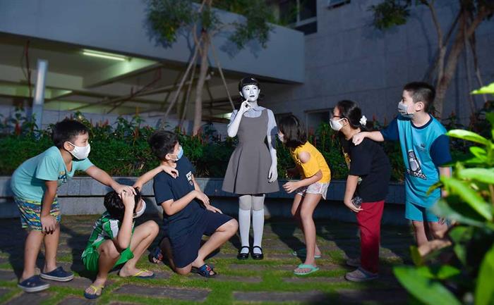 Hoá trang thành nhân vật vô cùng nguy hiểm trong bộ phim đình đám châu Á - Squid Game, Ngọc Thanh Tâm còn tăng thêm độ “rùng rợn” bằng việc nhuộm đen cả người và xuống khu nhà nơi cô ở để thực hiện bộ hình Halloween độc nhất vô nhị. Không chỉ tạo dáng bên xế hộp tiền tỷ, nữ diễn viên còn dạo vài vòng siêu thị và mời luôn trẻ em trong khu nhà làm diễn viên nhí để bộ hình thêm sống động. Ngọc Thanh Tâm cho biết, cô rất yêu thích các dịp lễ hội trong năm, và Halloween cũng không ngoại lệ. Nếu như mọi năm cô được hoá trang ra phố cùng hội bạn thân, thì năm nay cô chỉ có thể hoà cùng không khí lễ hội tại nhà. Tuy nhiên, sự hào hứng khi được hoá trang thành một nhân vật ấn tượng nào đó luôn làm nữ diễn viên sinh năm 1993 phấn khích, bất kể phải đón Halloween ở nhà hay ra phố cùng bạn bè.