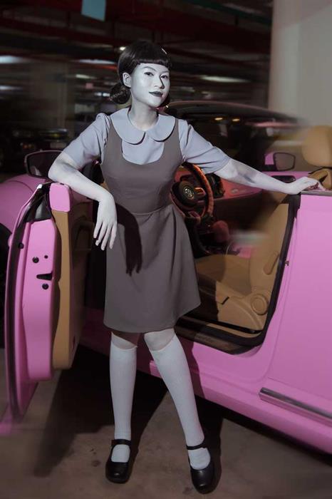 Tintuc - Còn vài ngày nữa mới đến Halloween nhưng Ngọc Thanh Tâm đã quyết tâm hoá trang, xuống phố chơi sớm.