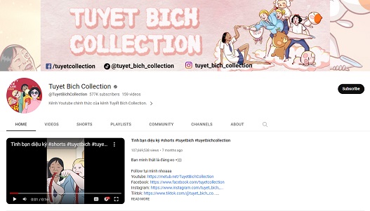 Tintuc - Sở hữu fanpage hơn 2,1 triệu theo dõi, kênh YouTube hơn 575 ngàn lượt đăng ký, kênh TikTok hơn 3 triệu theo dõi, Tuyết Bích Collection vẫn thuộc top đầu kênh sáng tạo nội dung hoạt hình được theo dõi và yêu thích của đông đảo bạn trẻ dùng mạng xã hội.