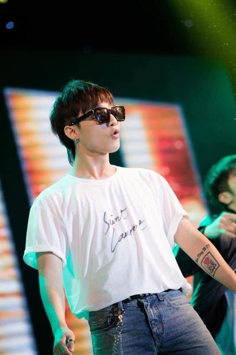 Kiểu tóc thắt sát da đầu cũng được ekip "có tâm" chuẩn bị để anh chàng thỏa sức "quẫy" trên sân khấu.