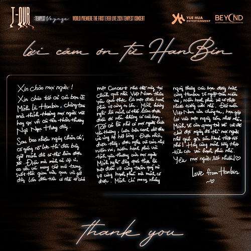 Hậu concert, mới đây, Hanbin và 5 thành viên còn lại của Tempest đã đăng tải thư viết tay gửi lời cảm ơn đến với khán giả Việt nói chung, cộng đồng V-iE (fan club của nhóm) nói riêng.