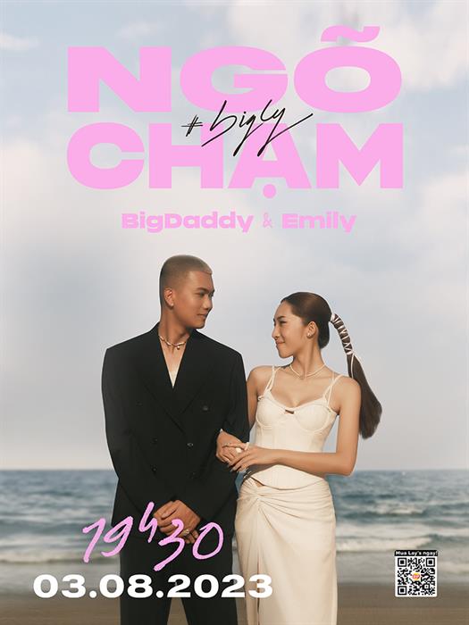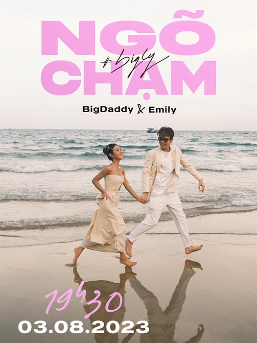 Chia sẻ về bí mật đằng sau tấm thiệp đầy bất ngờ này, Emily tiết lộ trên trang cá nhân về việc ông xã BigDaddy đang ở thời điểm “khủng hoảng tuổi 32” khi đòi mua nhẫn đôi và làm đám cưới bất ngờ. Bộ đôi ngay sau đó tung ra poster “tình bể bình" mang tên “Ngõ Chạm" hé lộ hình ảnh đầy lãng mạn bên bãi biển. Không chỉ tung ra hình ảnh của “cô dâu chú rể", BigDaddy - Emily còn chu đáo làm poster cho dàn phù dâu phù rể chất lượng như vợ chồng Trang Lou - Tùng Sơn, Kiều Ly Phạm cùng ông xã Đức Anh, gia đình nhà Tròn Mama và cả bộ đôi cực hot Huyme - Hàn Hằng.