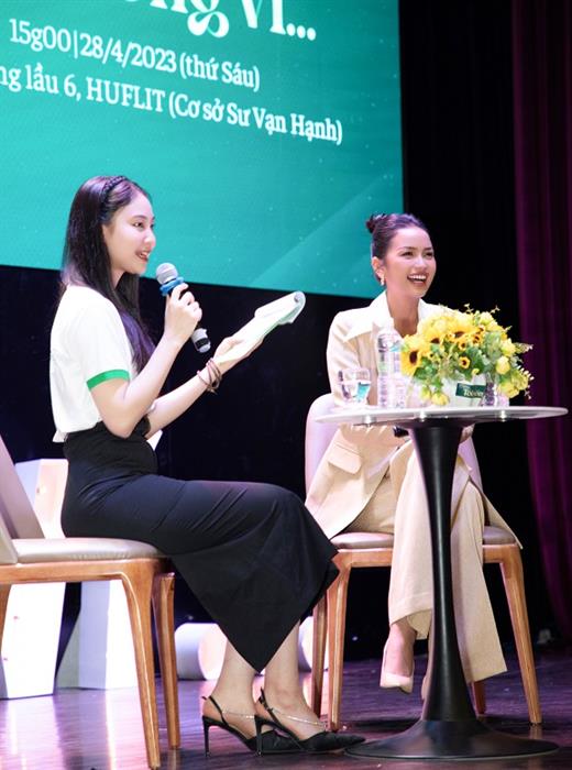 Trong buổi trò chuyện, Ngọc Châu trải lòng và mang đến những câu chuyện ý nghĩa giúp các sinh viên tháo gỡ những thắc mắc trong hành trình định nghĩa giá trị của cuộc sống và định danh chính mình bằng những trải nghiệm thực tế của bản thân.