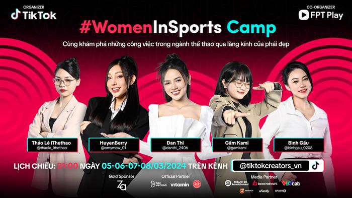 Ngoài ra, một series truyền hình thực tế mang tên "#WomenInSports experience camp" đã được ghi hình và phát sóng tại tài khoản TikTok @tiktokcreators_vn và nền tảng FPT Play với các thử thách hấp dẫn và trải nghiệm thú vị dành cho 5 nhà sáng tạo nội dung nữ @gamkami; @Thảo Lê iThethao; @danthi_2406; @omymow_01; @binhgau_0208. Những nội dung thực tế vừa gần gũi, vừa mới lạ sẽ giúp người xem hiểu hơn về phụ nữ, từ đó góp phần thay đổi định kiến và chia sẻ về ngành thể thao dưới góc nhìn của phái đẹp để truyền cảm hứng đến nhiều người hơn nữa, đặc biệt là phụ nữ.