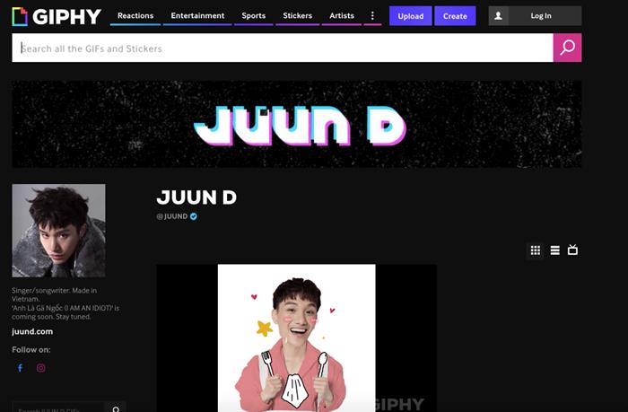 Cùng với việc ra mắt bộ GIF, sticker này, JUUN D đã trở thành nghệ sĩ Việt Nam đầu tiên có tài khoản xác thực trên Giphy - nền tảng về ảnh động GIF phổ biến toàn cầu, cùng với các tên tuổi quốc tế như BTS, Ariana Grande, BLACKPINK, Taylor Swift, … cũng đều có tài khoản tại đây. Từ nay, fan cũng như người dùng Internet có thể dễ dàng tìm kiếm hình ảnh của JUUN trên “kho” ảnh GIF lớn nhất thế giới này.