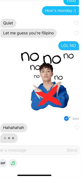 Chọn nút GIF ở phía dưới màn hình chat. Gõ JUUN D trong phần tìm kiếm và chọn sticker muốn sử dụng.