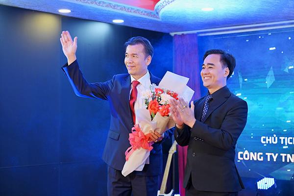 Ông Trần Phước Nha - Phó CT HĐQT Công ty CP LMKD Fansipan trao hoa cho đối tác Ông An Sơn Lâm - Chủ tịch HĐTV - Giám Đốc Công ty TNHH Thuyền Buồm Đông Dương