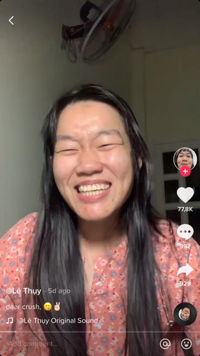 Sự xuất hiện của Lê Thuỵ với vẻ mộc mạc, giản dị cùng lối nói chuyện dễ thương, hài hước mang đến một làn gió mới trong cộng đồng sáng tạo TikTok. Thuỵ sẵn sàng để lộ làn da khuyết điểm, không son phấn, thậm chí không quá trau chuốt quần áo khi lên hình. Mặc dù nội dung đơn giản, ít sử dụng hiệu ứng long lanh nhưng mỗi video của cô nàng đều thu hút hàng trăm nghìn, thậm chí hàng triệu lượt xem chỉ trong thời gian ngắn. Đến nay, tài khoản @thuyle2000 đã chạm ngưỡng 2,7 triệu lượt theo dõi và 47,1 nghìn lượt thích. Và cứ thế, Lê Thuỵ nổi lên như một hiện tượng mạng bởi chính sự tự tin thể hiện chính mình.