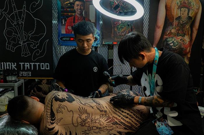 Tintuc - SaiGon Tattoo Expo 2024 là lễ hội xăm nghệ thuật lớn nhất Đông Nam Á. Hai ngày đầu tiên của sự kiện diễn ra vào ngày 14 và 15/3 tại Riverside Bến Vân Đồn, quận 4 (TP.HCM), thu hút đông đảo artist và khán giả.
