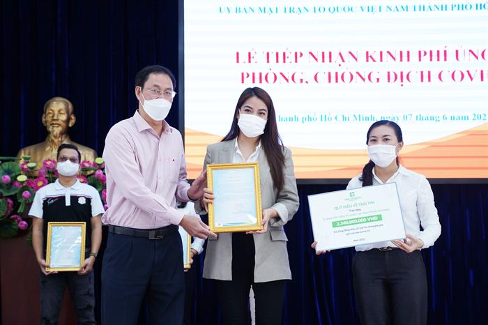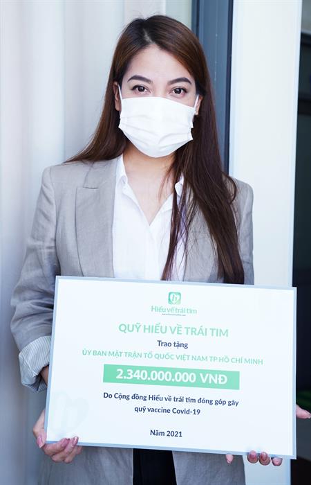 Diễn viên Trương Ngọc Ánh - Giám đốc Truyền thông Quỹ Hiểu về trái tim đã thay mặt Quỹ trao 2 tỷ 340 triệu đồng, đóng góp vào quỹ vaccine quốc gia