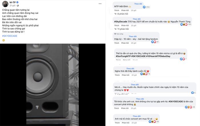 Hình chụp màn hình từ fanpage M-TP và bình luận của cộng đồng người hâm mộ