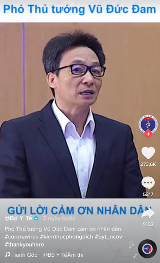 Cùng chiến dịch #thankyouhero, Phó Thủ Tướng Vũ Đức Đam đã gửi lời cảm ơn tới toàn thể nhân dân, các cơ quan chức năng và đặc biệt là của đội ngũ bác sĩ, y tế thông qua đoạn video của Bộ Y Tế đăng tải trên TikTok