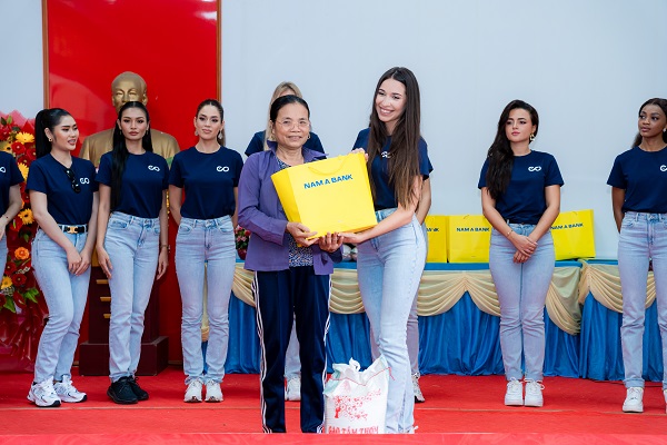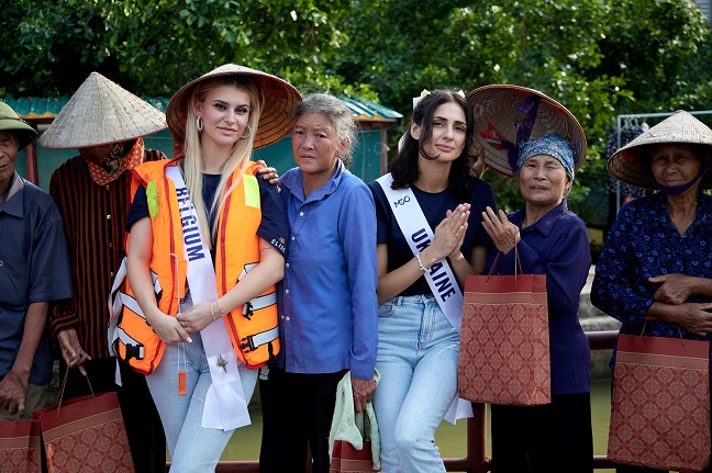 Ngay sau khi nhập cuộc tại Hà Nội, các thí sinh cùng ban tổ chức Miss Cosmo đã đến trao quà và tổng tiền mặt hơn 600 triệu cho các hoàn cảnh khó khăn bị ảnh hưởng bởi bão lũ.