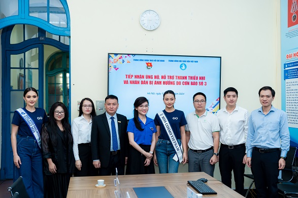Thực hiện các hoạt động tiếp sau khi công bố số tiền chia sẻ, sáng 13/9, tại Hà Nội, Ban tổ chức Miss Cosmo, đại diện Nam A Bank, các thí sinh Miss Cosmo 2024 đã đến Văn phòng Trung ương Đoàn trao tặng số tiền 400 triệu đồng để ủng hộ thanh thiếu nhi và nhân dân khắc phục hậu quả ảnh hưởng do bão Yagi gây ra.