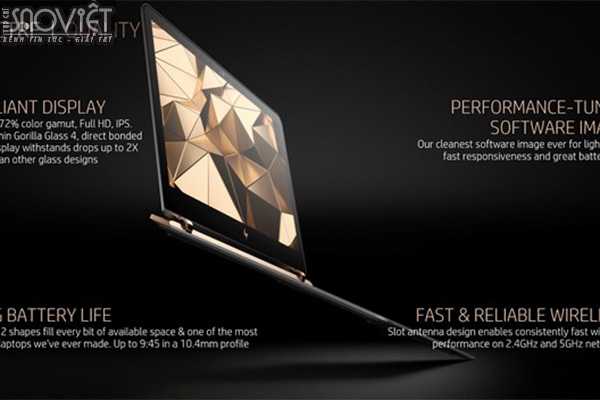 Tapchisaoviet - HP Spectre 13,3 có độ dày chỉ 10,4 mm, trọng lượng 1,11 kg, là máy tính xách tay mỏng nhất hiện tại.