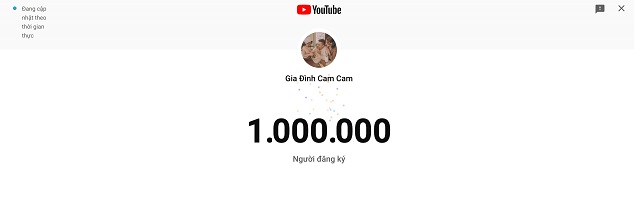 Tintuc - Sau một thời gian dài đầu tư những nội dung chất lượng và nhận được những thành quả nhất định, nam diễn viên Kiên Hoàng vừa chia sẻ tới khán giả hình ảnh cán mốc 1 triệu subscribers vào ngày 18/07 của “Gia Đình Cam Cam” – kênh YouTube riêng của hai vợ chồng cùng con gái.