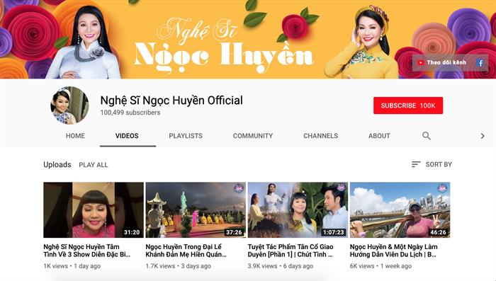 Mới đây, Nghệ sĩ Ngọc Huyền vừa báo tin vui đến người hâm mộ khi cô chính thức nhận được nút bạc từ YouTube. Được biết, Ngọc Huyền cũng là nghệ sĩ cải lương đầu tiên của Việt Nam nhận được giải thưởng danh giá này từ mạng xã hội chia sẻ Video lớn nhất hành tinh. Bắt đầu thành lập kênh YouTube từ tháng 12/2016, đến nay, nghệ sĩ Ngọc Huyền đã có 100,499 lượt đăng ký theo dõi và có gần 39 triệu lượt xem cho các video trên kênh của mình. Trong đó, video clip Cát Bụi Cuộc Đời cũng vừa chạm mốc 3 triệu lượt xem, một điều mà bất cứ nghệ sĩ cải lương trẻ nào cũng phải ngưỡng mộ. Chia sẻ về tin vui này, Ngọc Huyền cho biết cô đã rất xúc động khi vẫn luôn nhận được sự yêu thương, ủng hộ của khán giả dù đã hoạt động nghệ thuật hơn 35 năm.