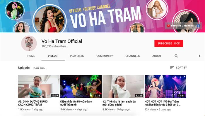 Một nghệ sĩ Việt nữa cũng vừa nhận được nút bạc từ YouTube là ca sĩ Võ Hạ Trâm. Nổi danh từ giải Quán quân cuộc thi Ngôi sao Tiếng hát Truyền hình TP.HCM năm 2007, Võ Hạ Trâm ghi dấu ấn sâu đậm trong lòng khán giả bởi giọng hát trong veo đầy nội lực. Bên cạnh đó, tính cách nhẹ nhàng thân thiện cùng lối sống giản dị, không scandal cũng là lý do khiến nữ ca sĩ sinh năm 1990 nhận được sự yêu mến của khán giả. Đầu tháng 01/2019, nữ ca sĩ gây bất ngờ khi tuyên bố kết hôn cùng bạn trai doanh nhân người Ấn Độ hơn 12 tuổi. Trên trang YouTube chính thức của mình, bên cạnh các sản phẩm âm nhạc, Võ Hạ Trâm còn thường xuyên đăng tải các video clip hướng dẫn tips làm đẹp, dinh dưỡng cùng các khoảnh khắc đời thường bên người chồng doanh nhân thu hút sự chú ý lớn từ cư dân mạng. Tính đến nay kênh YouTube của nữ ca sĩ đã cán mốc 100,335 lượt đăng ký theo dõi với hơn 25 triệu lượt xem.