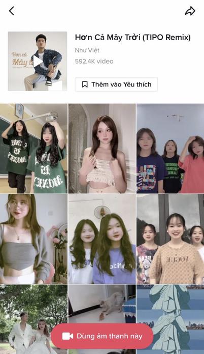Cũng là một "bông hoa nở muộn", "Hơn Cả Mây Trời" đã có màn lội ngược dòng ngoạn mục trên đường đua âm nhạc TikTok khi bản gốc phát hành cách đây 3 năm chưa tạo được hiệu ứng tích cực từ người hâm mộ. Là bản ballad nhẹ nhàng kể về tình cảm của chàng trai dành cho người mình yêu "nhiều hơn cả mây trời không ai bằng anh đâu", ca khúc nay đã nổi lên như một hiện tượng nhờ phiên bản remix đầy trẻ trung và sôi động của DJ TIPO. Kết hợp cùng hiệu ứng "Syrup II", bài hát đã tạo nên hàng loạt video nhảy dễ thương, thu hút hơn 665 triệu lượt xem và là nhạc nền của hơn 1,5 triệu video.