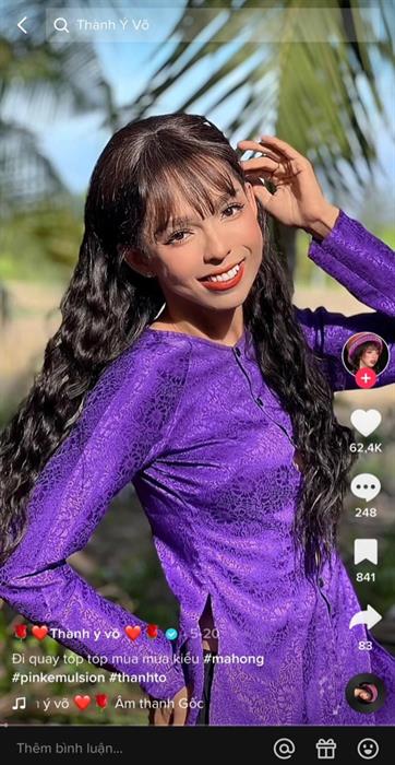 Được cộng đồng nhớ đến với biệt danh "Má cám", Thành Ý Võ đã xây dựng thành công hình tượng “đẹp", "lạ” nhưng rất duyên trong mắt người hâm mộ. Những video của @thanhyvo luôn mang nét mộc mạc cùng những câu chuyện gần gũi, gắn liền với hình ảnh con người miền Tây chân chất, thật thà. Không chỉ gây ấn tượng mạnh mẽ với người xem nhờ nét diễn duyên dáng, Thành Ý Võ này còn cho thấy khả năng make up siêu đỉnh với những video biến hóa thu hút hơn triệu lượt xem. Hiện nay, kênh TikTok của "Má cám" đã mang về những con số đáng ngưỡng mộ, gần 11.6 triệu lượt theo dõi với hơn 380 triệu lượt thích.