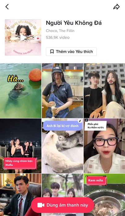 "Một đen đá không đường và một người yêu thương không đá em" là những giai điệu đang gây sốt trên TikTok suốt thời gian qua khiến ai cũng không ngừng nhún nhảy. Được thể hiện qua giọng hát ngọt ngào của Choco, ca khúc "Người Yêu Không Đá" thể hiện đúng tinh thần của Gen Z với những mong muốn đầy phá cách của các cô nàng khi yêu khiến bao chàng trai phải đổ gục. Bài hát đã tạo nên hàng loạt điệu nhảy cực kì dễ thương khi kết hợp cùng hiệu ứng "Macbook Heart", thu hút hơn 343 triệu lượt xem và 537 nghìn lượt video tham gia và hiện vẫn chưa có dấu hiệu hạ nhiệt trên đường đua âm nhạc TikTok.