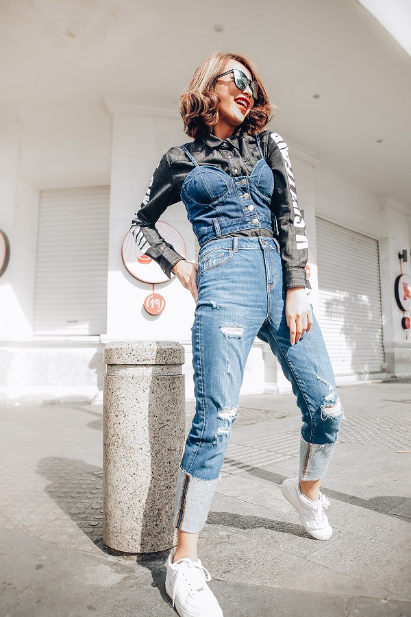 Linh Chi, nàng mẫu cực năng động với nét đẹp tựa Cara Delevingne – thiên thần Victoria Secret lại chọn cách mix áo Croptop bên ngoài áo sơmi Denim dài tay để làm điểm nhấn, một kiểu phối lạ mắt đầy ngẫu hứng. Còn mẫu quần Jean Boy Friend xăn gấu cao kết hợp với giày Sneaker trắng lại đúng chuẩn năng lượng trẻ của Linh Chi.