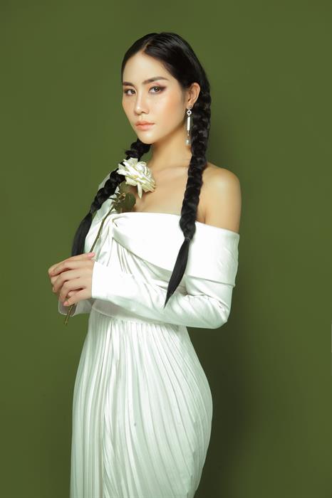 Cũng là mốt tóc tết nhưng Hoàng Hạnh khéo léo mang đến sự mới mẻ với kiểu tóc tết thấp để phía sau gọn gàng.