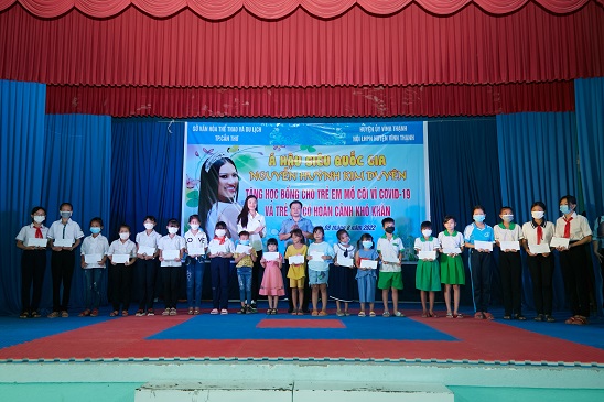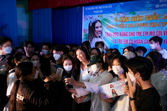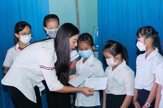 Tintuc - Á hậu Siêu quốc gia – Nguyễn Huỳnh Kim Duyên đã có chuyến thiện nguyện đầu tiên sau khi đăng quang. Cô dùng tiền thưởng để trao tặng học bổng cho những trẻ em mồ côi vì dịch COVID-19 và trẻ em có hoàn cảnh khó khăn tại huyện Vĩnh Thạnh, Thành phố Cần Thơ.
