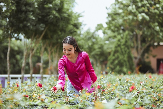 Dừng chân tại làng hoa Sa Đéc – thủ phủ hoa của miền Tây, Á hậu Thủy Tiên duyên dáng trong chiếc áo bà ba, thích thú tìm hiểu về các loài hoa tại nơi đây. Làng hoa Sa Đéc có tiền thân là Làng hoa Tân Quy Đông, Làng hoa Sa Đéc, một làng nghề truyền thống hơn 100 năm tuổi. Thủy Tiên hào hứng chia sẻ khi đi du lịch Đồng Tháp, mọi người nên đến làng hoa Sa Đéc một lần để tận hưởng không khí và cảnh sắc nơi đây với muôn vàn loài hoa khoe sắc, tỏa ngát hương thơm.