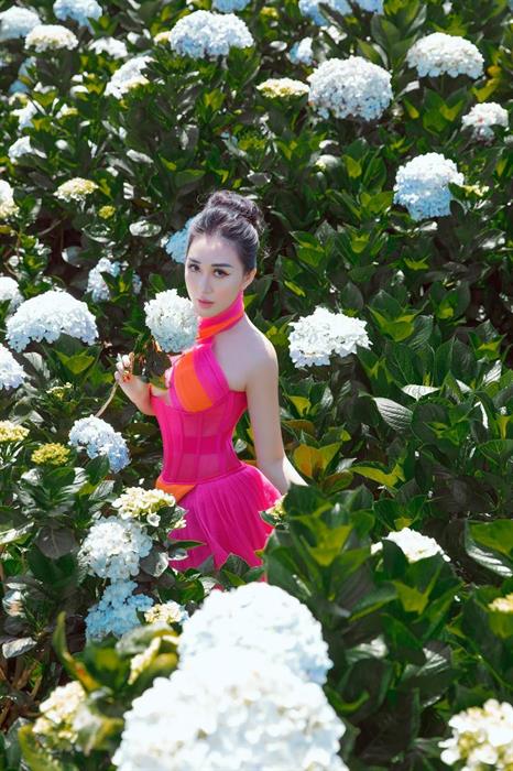 Loạt ảnh giữa vườn hoa cẩm tú cầu của Huỳnh Thúy Anh đã thu hút sự chú ý của người hâm mộ không chỉ bởi vóc dáng chuẩn mà còn bởi thần thái quyến rũ, thơ ngây của cô nàng.