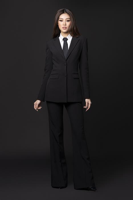 Bộ ảnh chia làm hai concept với gam màu trắng đen đối lập, thể hiện hai mặt tính cách của một người lãnh đạo. Với tone trang phục vest trắng, Khánh Vân chọn son môi đỏ đậm và tóc xoăn, gợi đến hình ảnh nữ doanh nhân hiện đại, tự tin, như câu slogan mà cô từng chia sẻ trước đó “tự tin với lựa chọn của chính mình”.