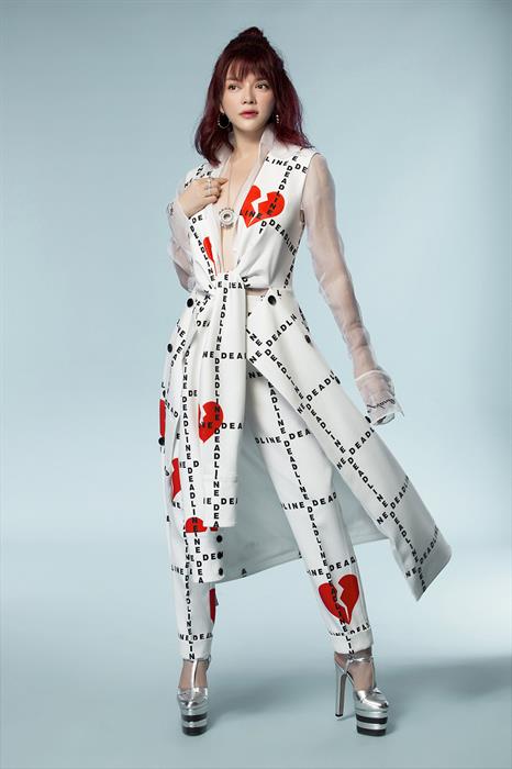 Không dừng lại ở đó Lý Nhã Kỳ tiếp tục đốt mắt người xem với trang phục họa tiết trái tim vỡ kèm mệnh lệnh "deadline" - nhắc nhớ nỗi hoang mang của nhiều người làm công sở. Đúng vậy, ở công sở có gì đáng quan tâm bằng deadline cơ chứ!