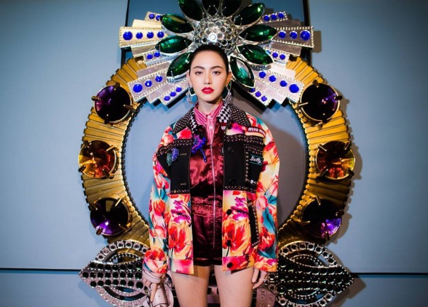 Tại một sự kiện của Miu Miu, Mai Davika nổi bật trong trang phục nhiều màu sắc bắt mắt cùng gương mặt sắc lạnh.