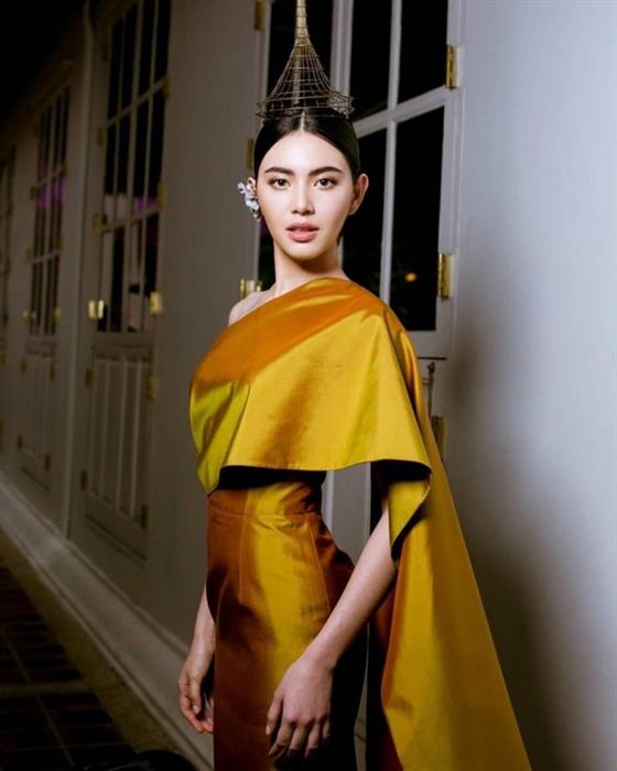 Bất luận là thương hiệu thời trang của nước ngoài hay trong nước, Mai Davika cũng đều thể hiện một cách xuất sắc. Trong hình là thiết kế của thương hiệu Pattarat ở Bangkok mang cảm hứng sáng tạo từ trang phục truyền thống của người Thái.