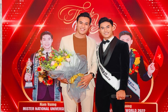 Tintuc - Vừa trở về nước sau khi đăng quang, Nam vương Hoàn Vũ 2022 Phi Việt và Á vương Thế giới 2022 Hữu Anh vừa chính thức có buổi gặp gỡ truyền thông và công bố dự án mới ở Nhà hàng Phố 79 tại TP.HCM vào tối ngày 27/06/2022.