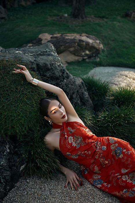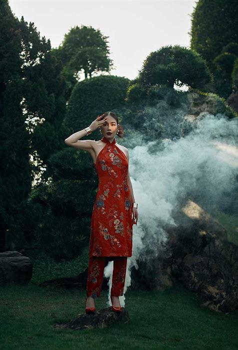 Đến kiểu áo dài hở vai màu đỏ bắt mắt cho thấy bước đột phá của bộ ảnh cũng như Tuyết Nga. Nữ ca sĩ vừa toát lên vẻ đẹp gợi cảm cuốn hút nhưng vẫn giữ được thần thái sang chảnh. Khí chất của Tuyết Nga từ thời đăng quang ngôi vị Hoa hậu Áo dài Việt Nam 2019 bùng nổ hơn cùng dạng trang phục phá cách độc lạ này.