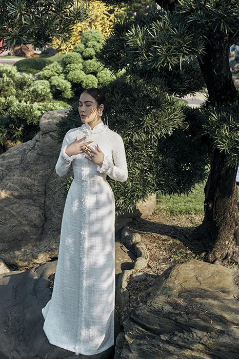 Trong bộ ảnh, Tuyết Nga chọn nhiều kiểu áo dài khác nhau, từ truyền thống giản dị cho đến cắt xẻ tinh tế độc lạ. Được biết, những thiết kế trong loạt ảnh được lấy cảm hứng từ nét đẹp Á Đông và tà áo dài Việt Nam. Tất cả đều được cách điệu rồi dùng chất liệu gấm và twist phối cùng phụ kiện hiện đai lạ mắt để tạo ra những điểm nhấn cá tính cho trang phục lẫn người mặc.