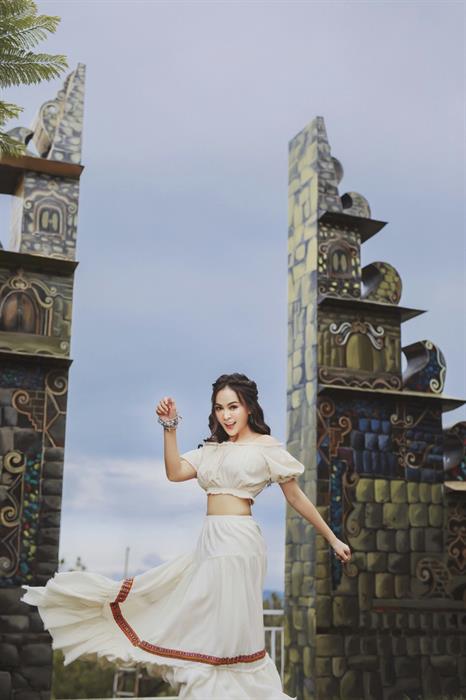Quán quân 'Duyên dáng Bolero 2018' đã có những shoot hình tuyệt đẹp trong chuyến lưu diễn tại quê hương Đà Lạt. Đà Lạt là địa điểm du lịch nổi tiếng với cảnh quan và thời tiết rất hợp lòng người. Gần đây, Đà Lạt còn gây sốt với cổng trời và tổ chim sống ảo. "Cổng trời Bali" là một trong những điểm check-in được nhiều du khách nước ngoài yêu thích ở Indonesia. Tại Đà Lạt, công trình với nét tương đồng cánh cổng Bali mới xuất hiện trong một khu du lịch trên đồi Robin.