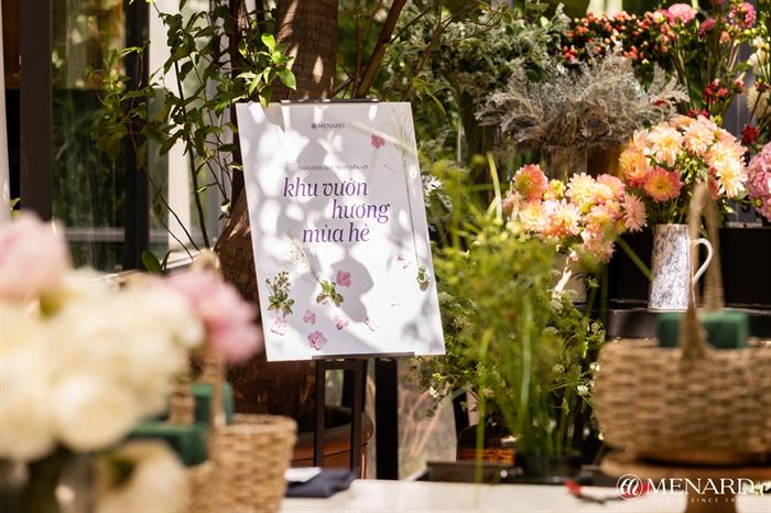 Đâu chỉ dừng lại ở những cái tên, Menard thực sự đã đặt trọn tâm sức trong từng chi tiết tại buổi workshop để đem đến những trải nghiệm văn hoá đa dạng từ Âu sang Á. Từng câu chữ trên thiếp mời đến cách bài trí cảnh vật, món ăn finger food cùng mocktail collagen tươi mát, thậm chí là âm sắc trong trẻo đến từ tiếng đàn violin - tất cả đều được “đong đếm" cẩn thận để tạo nên bản hoà ca “Hương Mùa Hè” tuyệt vời nhất trong lòng mỗi người.
